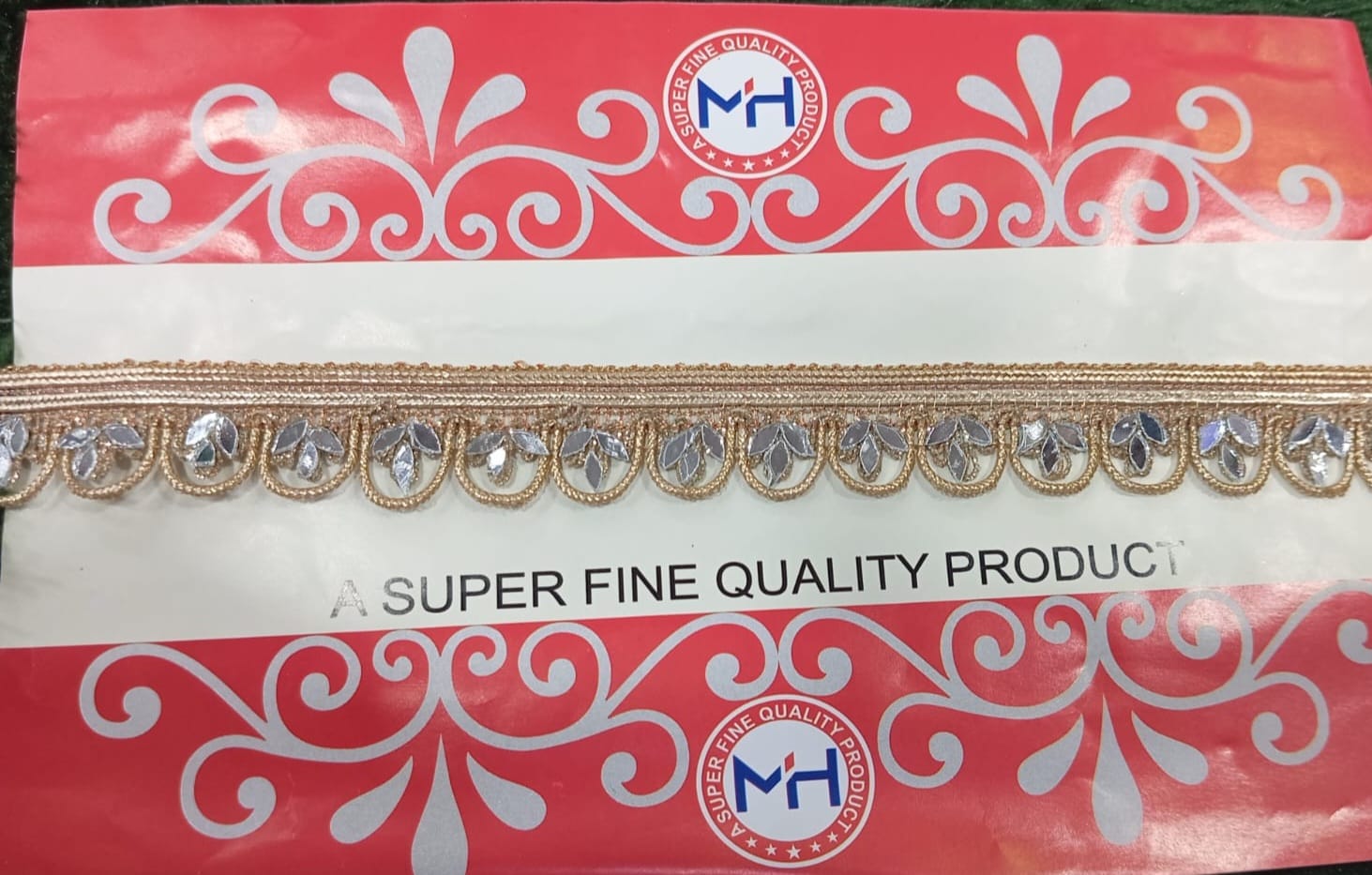 Its eye-catching reflections make it an ideal choice for festive wear, bridal outfits, and designer collections. Whether you're styling a lehenga, dupatta, blouse, or home decor item, this lace adds instant elegance and brightness.